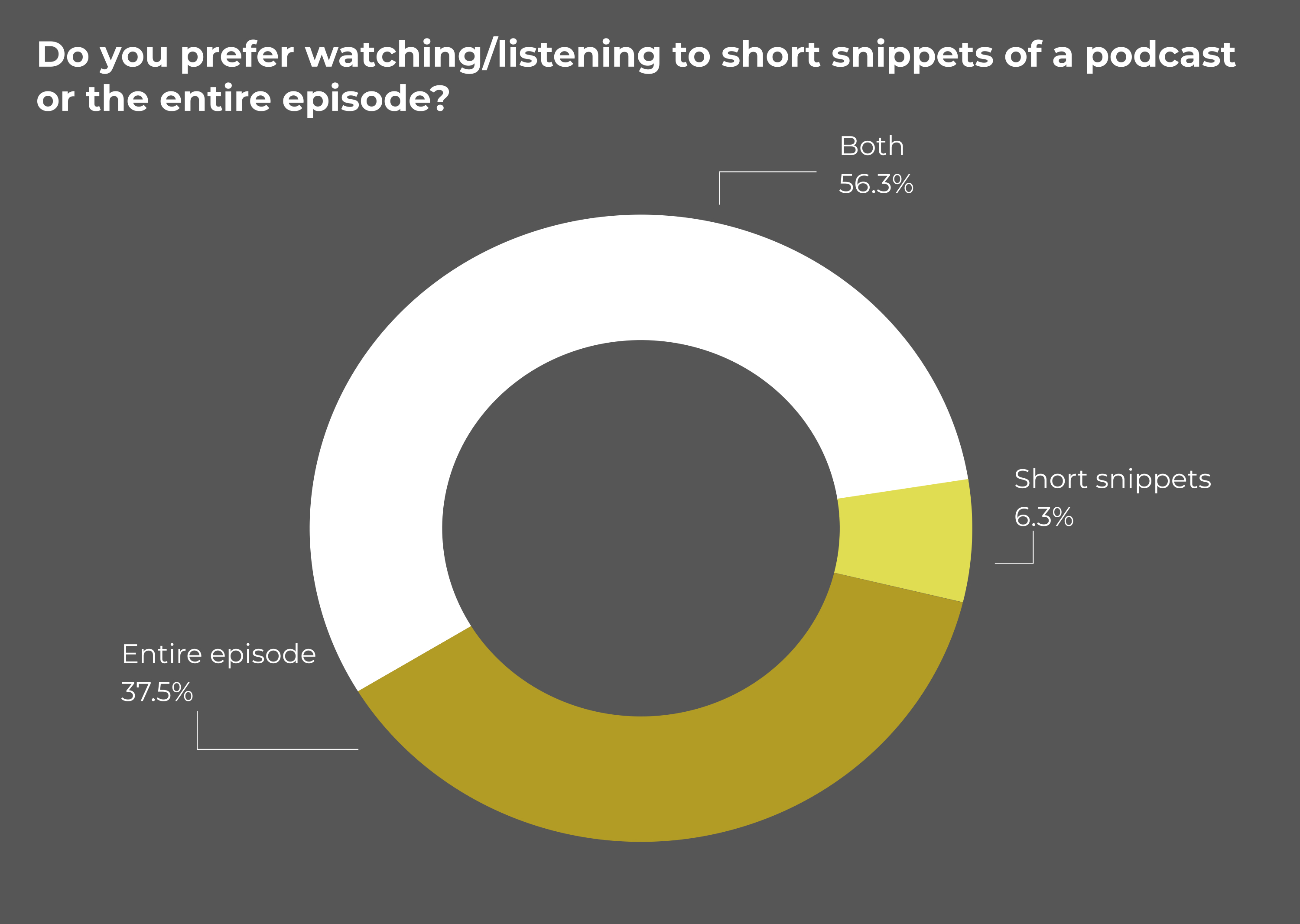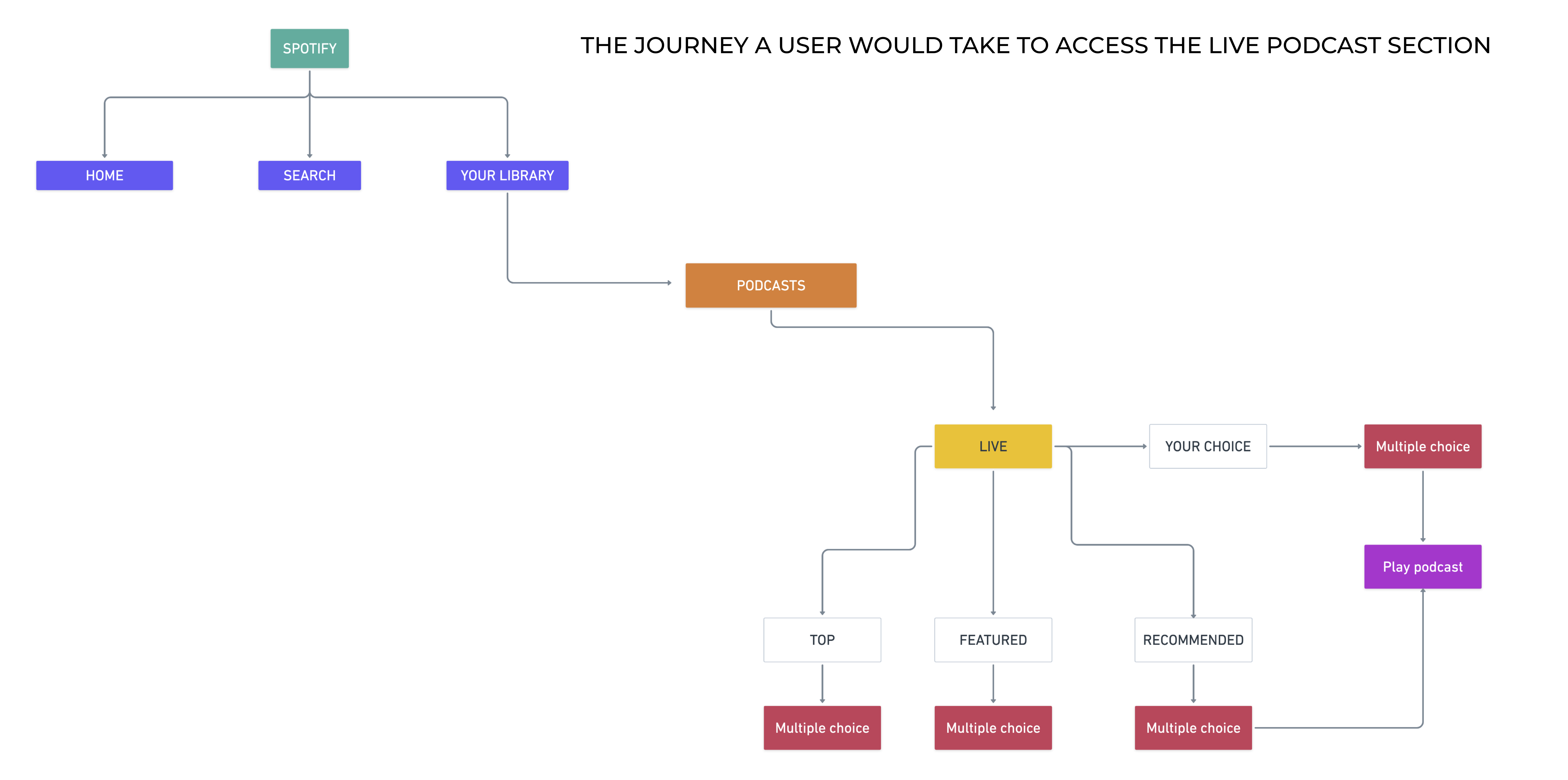 After competitor analysis, I was able to come up with a design perspective and based on that I conducted a user research. A survey was conducted to study users' needs, goals, and capabilities to specify the design and construction of the Live segment on Spotify's podcast section.